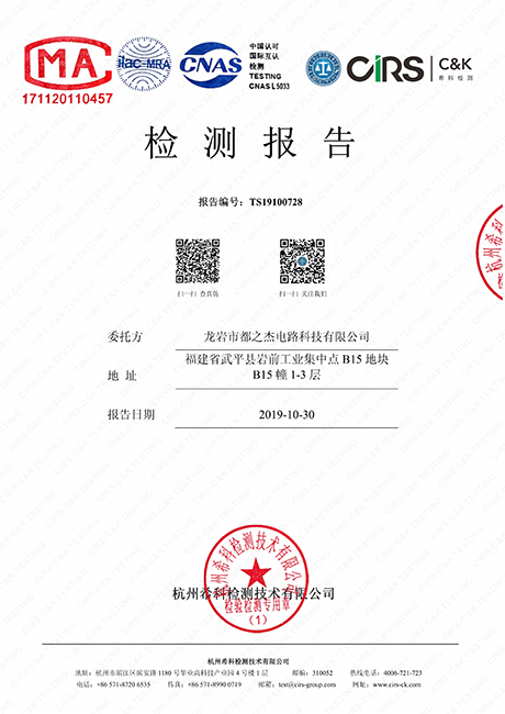 工廠搭建了ISO-9001、T/S16949、ISO14001的管理體系并通過認(rèn)證,產(chǎn)品符合CQC、UL、IPC、RoHS等